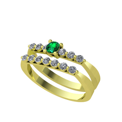 Yeşil kuvars ve beyaz zirkon 14 ayar altın yüzük