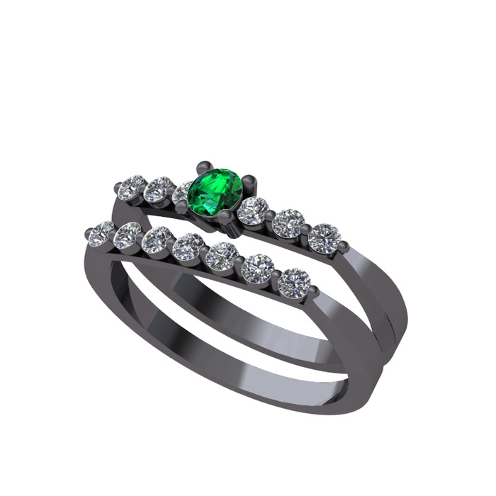 Yeşil kuvars ve beyaz zirkon 925 ayar siyah rodyum kaplama gümüş yüzük