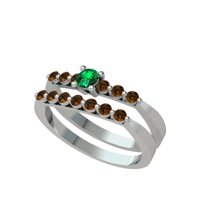 Yeşil kuvars ve dumanlı kuvars 18 ayar beyaz altın yüzük