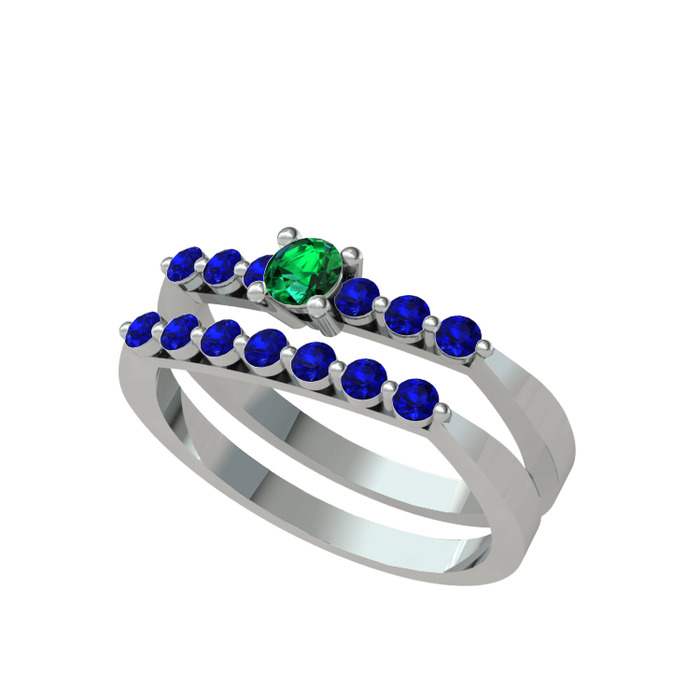 Yeşil kuvars ve lab safir 8 ayar beyaz altın yüzük