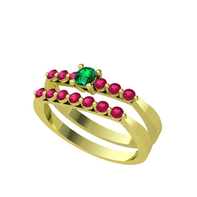 Yeşil kuvars ve rodolit garnet 18 ayar altın yüzük