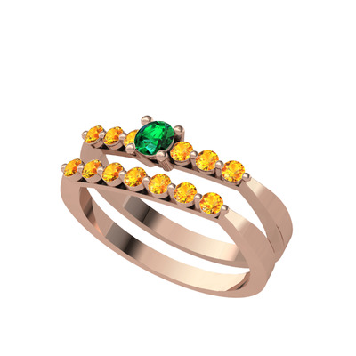 Yeşil kuvars ve sitrin 8 ayar rose altın yüzük