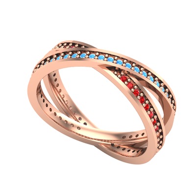 Akuamarin ve garnet 925 ayar rose altın kaplama gümüş yüzük