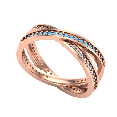 Akuamarin ve pırlanta 8 ayar rose altın yüzük (0.675 karat)