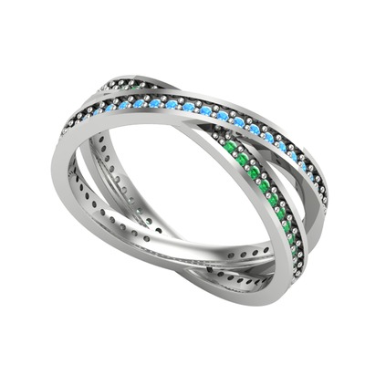 Akuamarin ve yeşil kuvars 8 ayar beyaz altın yüzük