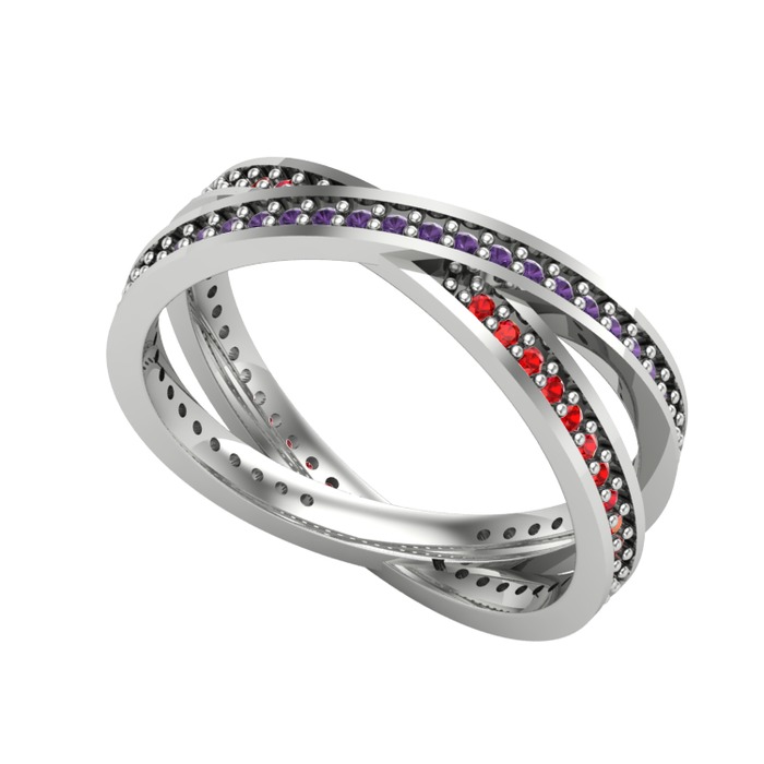Ametist ve garnet 14 ayar beyaz altın yüzük