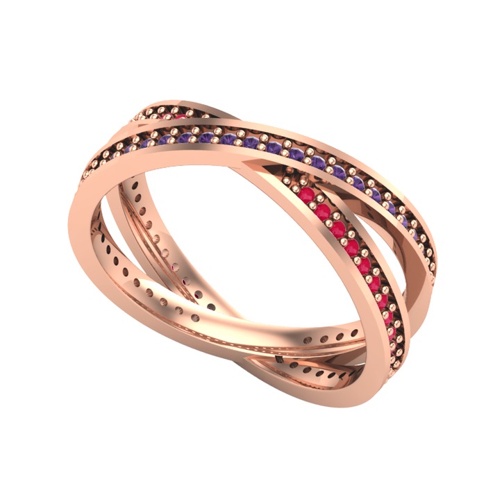 Ametist ve kök yakut 14 ayar rose altın yüzük