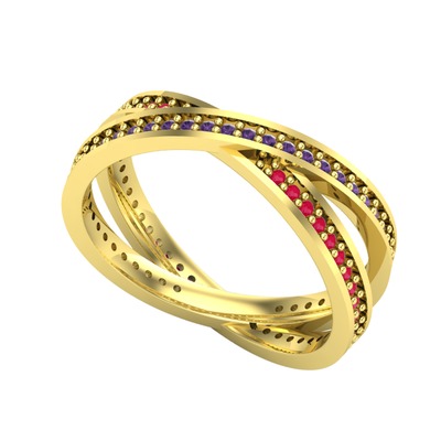 Ametist ve kök yakut 8 ayar altın yüzük