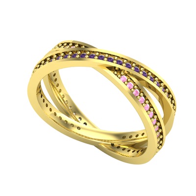 Ametist ve pembe kuvars 8 ayar altın yüzük