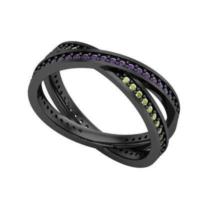 Ametist ve peridot 925 ayar siyah rodyum kaplama gümüş yüzük