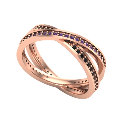 Ametist ve siyah zirkon 14 ayar rose altın yüzük