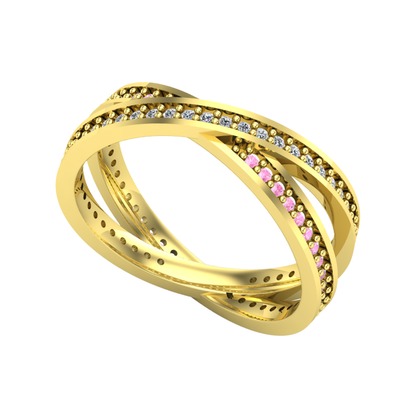 Beyaz zirkon ve pembe kuvars 8 ayar altın yüzük