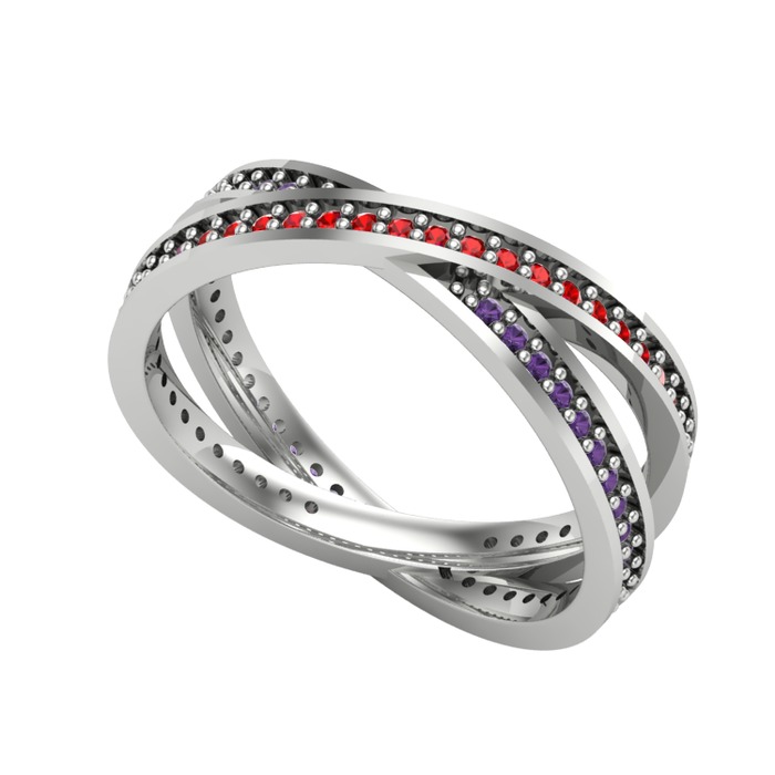 Garnet ve ametist 18 ayar beyaz altın yüzük