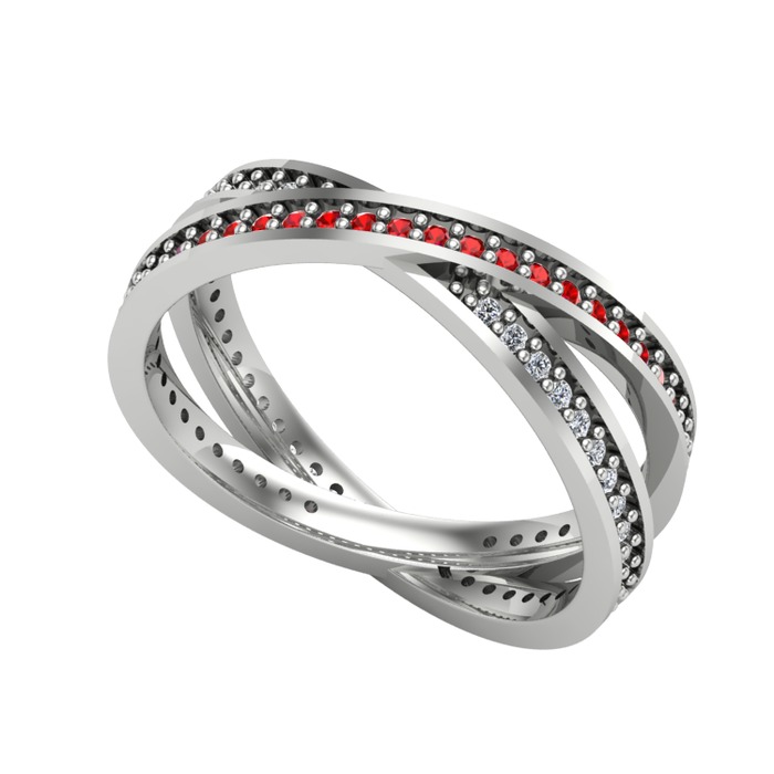Garnet ve beyaz zirkon 18 ayar beyaz altın yüzük