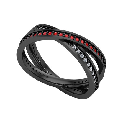Garnet ve beyaz zirkon 925 ayar siyah rodyum kaplama gümüş yüzük