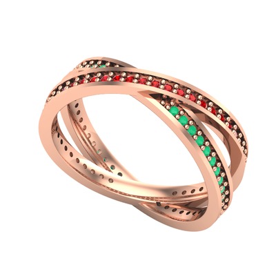 Garnet ve kök zümrüt 18 ayar rose altın yüzük