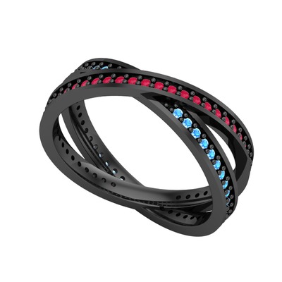 Kök yakut ve akuamarin 925 ayar siyah rodyum kaplama gümüş yüzük
