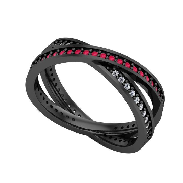 Kök yakut ve beyaz zirkon 925 ayar siyah rodyum kaplama gümüş yüzük
