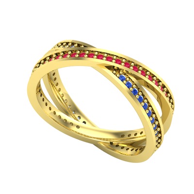 Kök yakut ve lab safir 925 ayar altın kaplama gümüş yüzük
