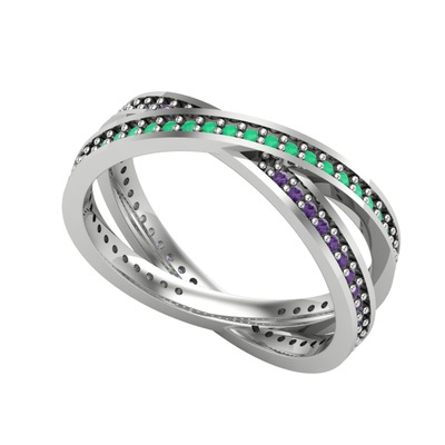 Kök zümrüt ve ametist 14 ayar beyaz altın yüzük