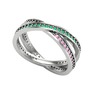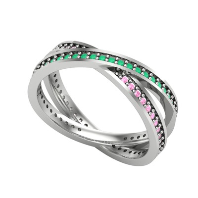 Kök zümrüt ve pembe kuvars 18 ayar beyaz altın yüzük