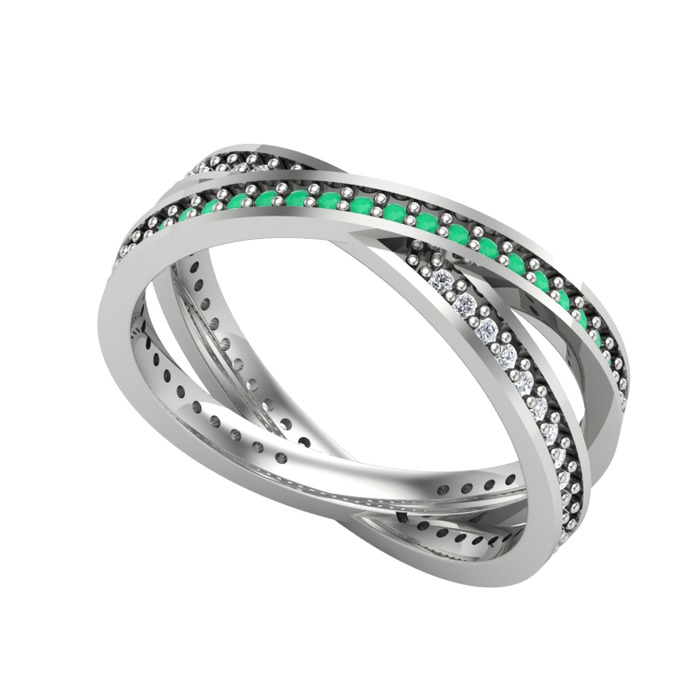 Kök zümrüt ve pırlanta 8 ayar beyaz altın yüzük (0.675 karat)