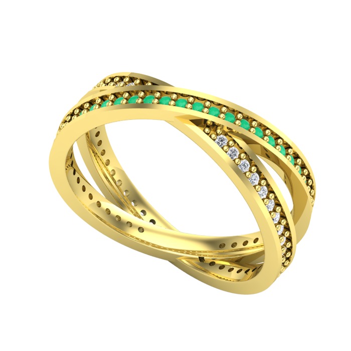 Kök zümrüt ve pırlanta 925 ayar altın kaplama gümüş yüzük (0.675 karat)