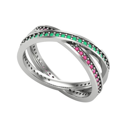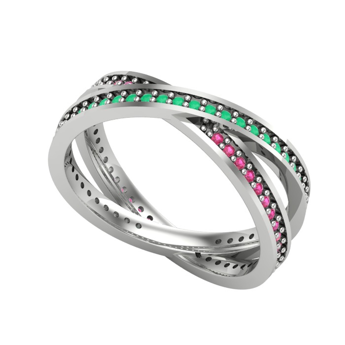 Kök zümrüt ve rodolit garnet 925 ayar gümüş yüzük