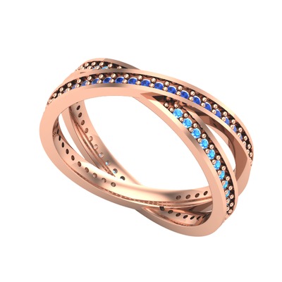 Lab safir ve akuamarin 14 ayar rose altın yüzük
