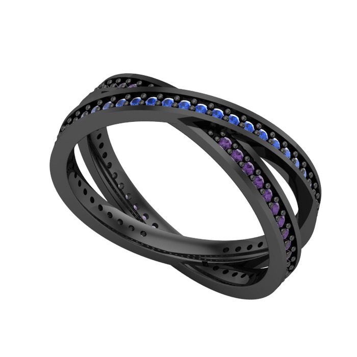 Lab safir ve ametist 925 ayar siyah rodyum kaplama gümüş yüzük