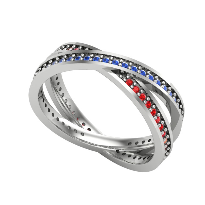 Lab safir ve garnet 8 ayar beyaz altın yüzük