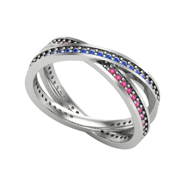 Lab safir ve rodolit garnet 18 ayar beyaz altın yüzük