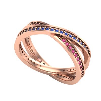 Lab safir ve rodolit garnet 18 ayar rose altın yüzük