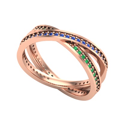 Lab safir ve yeşil kuvars 18 ayar rose altın yüzük
