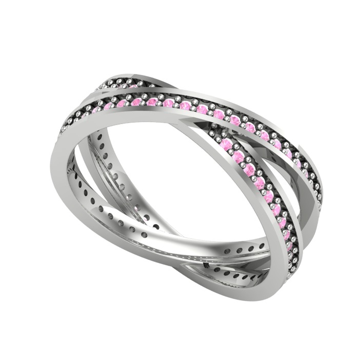 Pembe kuvars 8 ayar beyaz altın yüzük