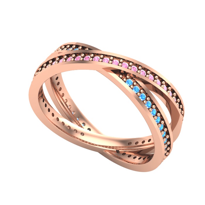 Pembe kuvars ve akuamarin 8 ayar rose altın yüzük