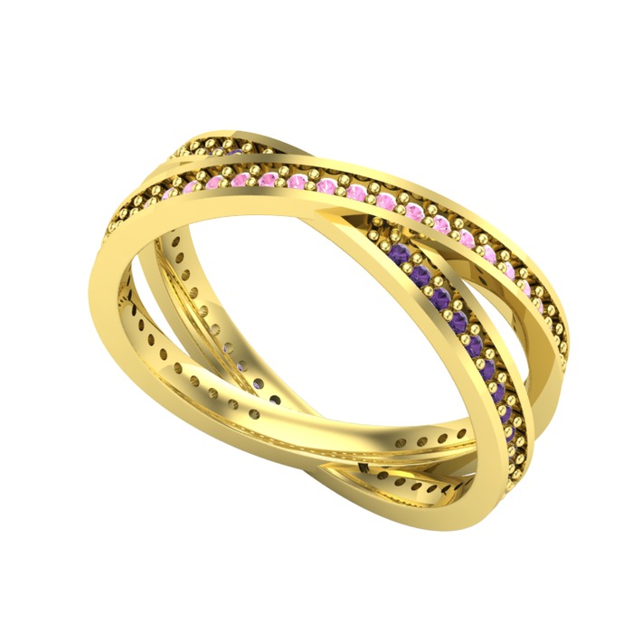 Pembe kuvars ve ametist 14 ayar altın yüzük