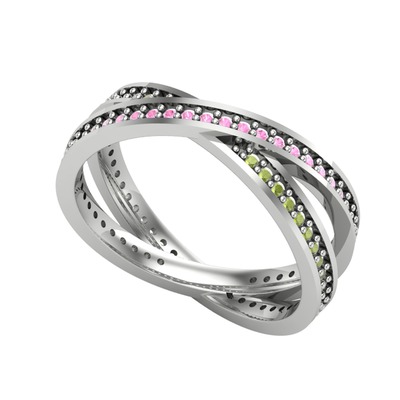 Pembe kuvars ve peridot 14 ayar beyaz altın yüzük