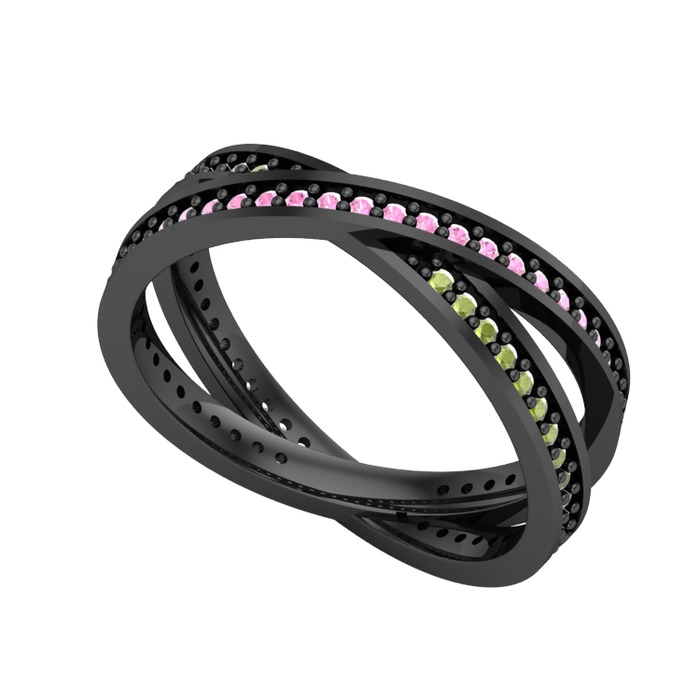 Pembe kuvars ve peridot 925 ayar siyah rodyum kaplama gümüş yüzük