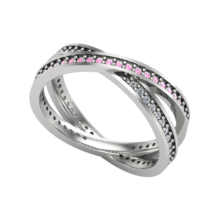 Pembe kuvars ve swarovski 14 ayar beyaz altın yüzük