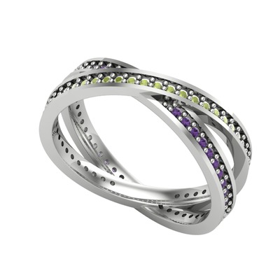 Peridot ve ametist 14 ayar beyaz altın yüzük