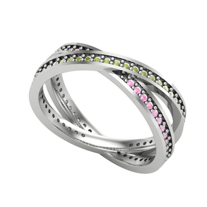 Peridot ve pembe kuvars 8 ayar beyaz altın yüzük