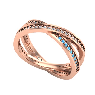 Pırlanta ve akuamarin 18 ayar rose altın yüzük (0.675 karat)