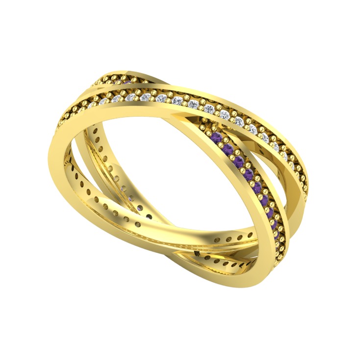 Pırlanta ve ametist 18 ayar altın yüzük (0.675 karat)