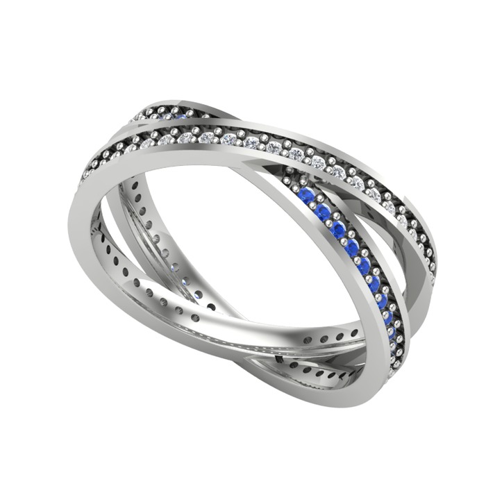 Pırlanta ve lab safir 925 ayar gümüş yüzük (0.675 karat)