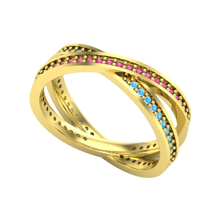 Rodolit garnet ve akuamarin 14 ayar altın yüzük