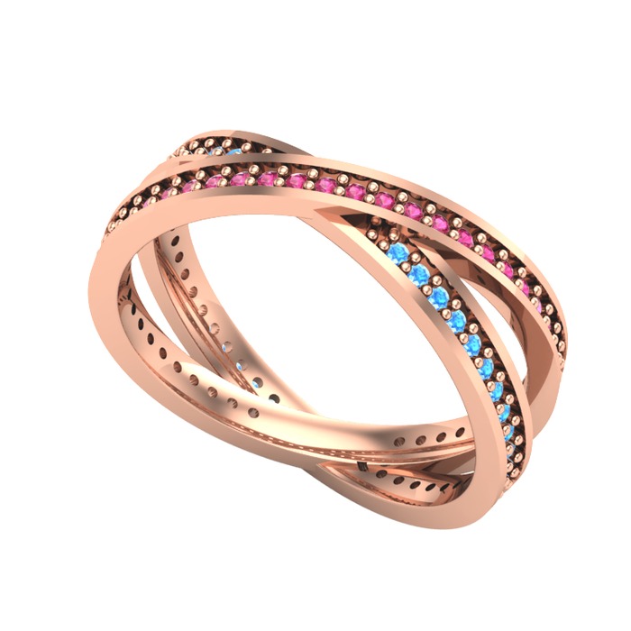 Rodolit garnet ve akuamarin 14 ayar rose altın yüzük