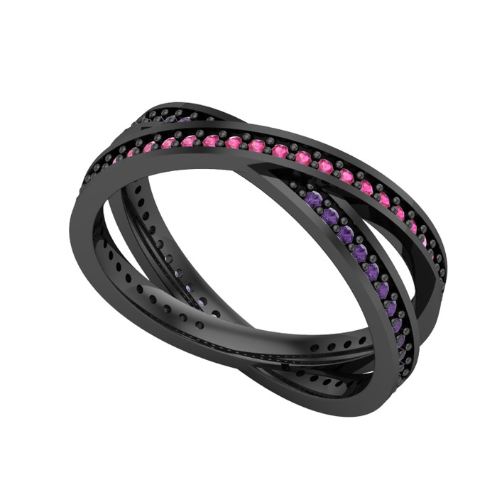 Rodolit garnet ve ametist 925 ayar siyah rodyum kaplama gümüş yüzük
