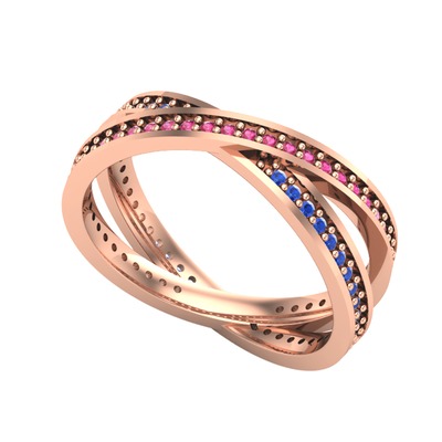 Rodolit garnet ve lab safir 8 ayar rose altın yüzük