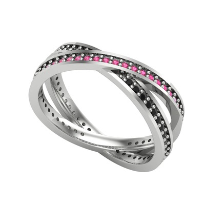 Rodolit garnet ve siyah zirkon 925 ayar gümüş yüzük